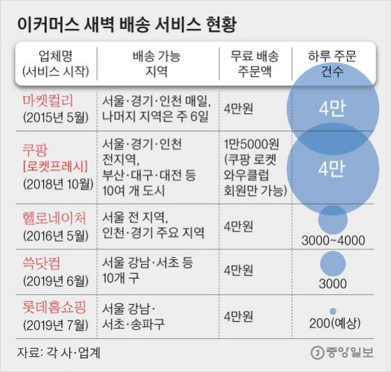 올해 택배노동자 사망자 5명 중에 4명이 쿠팡 노동자라네. 새벽배송 서비스 자체는 사실 어떤 기업도 유별나게 차이를 두기 어렵다. 새벽배송 시장은 최근 폭발적으로 성장했다. 0 ответов 16 ретвитов 0 отметок «нравится». 저녁 12시까지 주문하면 새벽06시 도착!